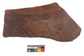 | Description / विवरण | Specimen of potsherd with black decorative geometric painting. |