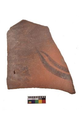 | Description / विवरण | Specimen of black on red ware with decorative geometric Two curved parallel lines painting. |