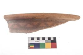 | Description / विवरण | Specimen of potsherd with black decorative geometric painting . |