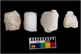 | Description / विवरण | Specimen of a cores with few broad fluted marks. Some of them are tapering at one end. Few are with sharp edges. |