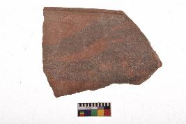 | Description / विवरण | Specimen of black on red ware with decorative geometric A row of latticed diamonds set in horizontal bands but having groups of oblique lines at intervals painting. |