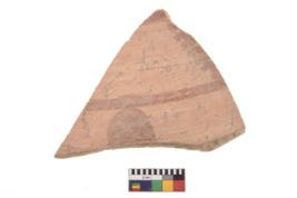 | Description / विवरण | A specimen of a potsherd. It is reddish in colour with black decorative geometric painting on it. |