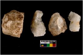 | Description / विवरण | Specimen of a cores with several broad fluted marks. The reverse bulb and platform can be seen. The flake scars are seen on all sides. |