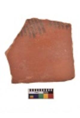 | Description / विवरण | Specimen of black on red ware with decorative geometric Obliques lines painting. |