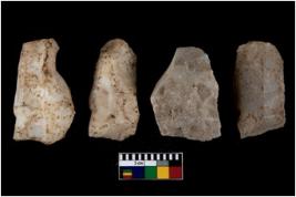 | Description / विवरण | There are n-4 of utilized cores. There are multidirectional irregular dominant scar pattern on both dorsal and ventral face of the cores. |
