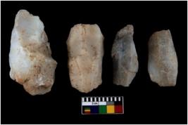 | Description / विवरण | There are n-4 of utilized cores. There are multidirectional irregular dominant scar pattern on both dorsal and ventral face of the cores. |