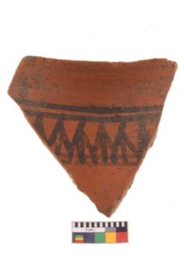 | Description / विवरण | Specimen of potsherd with black decorative geometric painting. |