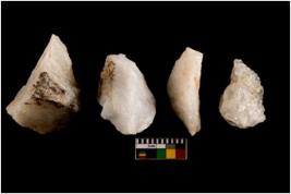 | Description / विवरण | Specimen of a cores with several broad fluted marks. The reverse bulb and platform can be seen. The flake scars are seen on all sides. |