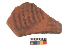 | Description / विवरण | Specimen of potsherd with black decorative geometric painting. |