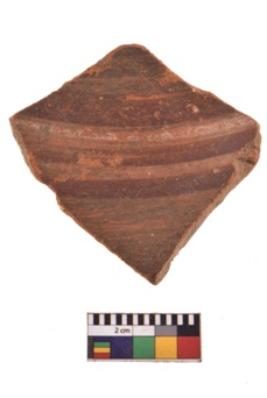 | Description / विवरण | Specimen of potsherd with decorative geometric painting. Type Black on Red Ware . |