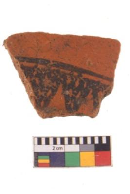 | Description / विवरण | Specimen of potsherd with black decorative geometric painting. |