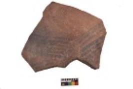 | Description / विवरण | Specimen of black on red ware with decorative geometric A lines pattern traingles painting. |