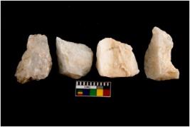 | Description / विवरण | Specimen of a cores with several broad fluted marks. The reverse bulb and platform can be seen. The flake scars are seen on all sides. |