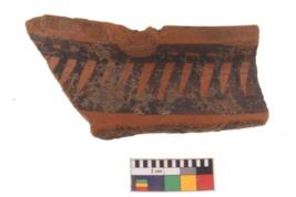 | Description / विवरण | Specimen of potsherd with black decorative geometric painting. |