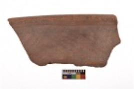 | Description / विवरण | Specimen of black on red ware with decorative geometric Groups of oblique strokes set in horizontal bands on the exterior painting. |