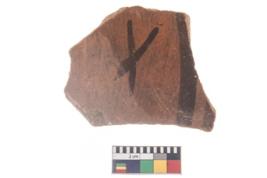 | Description / विवरण | Specimen of potsherd with black decorative geometric painting . |
