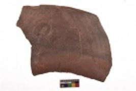 | Description / विवरण | Specimen of black on red ware with decorative geometric Groups of oblique strokes set in horizontal bands on the exterior painting. |