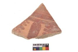 | Description / विवरण | A specimen of a potsherd. It is reddish in colour with black decorative geometric painting on it. |