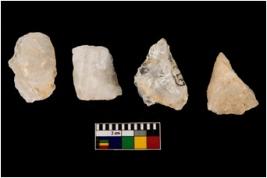 | Description / विवरण | Specimen of a cores with few broad fluted marks. Some of them are tapering at one end. Few are with sharp edges. |