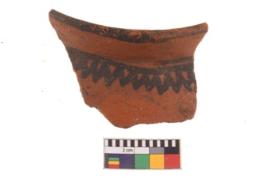 | Description / विवरण | Specimen of potsherd with black decorative geometric painting. |