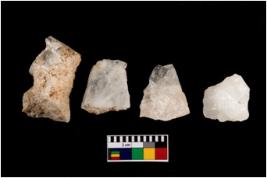 | Description / विवरण | Specimen of a cores with few broad fluted marks. Some of them are tapering at one end. Few are with sharp edges. |