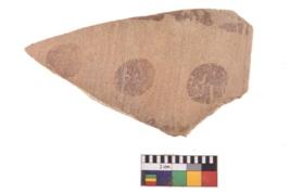 | Description / विवरण | A specimen of a potsherd. It is reddish in colour with black decorative geometric painting on it. |