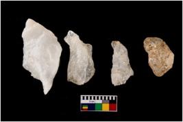| Description / विवरण | Specimen of a cores with few broad fluted marks. Some of them are tapering at one end. Few are with sharp edges. |