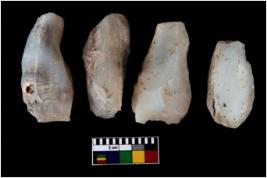 | Description / विवरण | There are n-4 of utilized cores. There are multidirectional irregular dominant scar pattern on both dorsal and ventral face of the cores. |