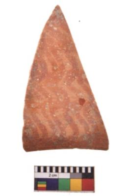 | Description / विवरण | Specimen of potsherd with decorative geometric painting. Type Black on Red Ware . |