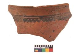| Description / विवरण | Specimen of potsherd with black decorative geometric painting. |