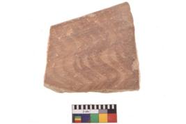 | Description / विवरण | A specimen of a potsherd. It is reddish in colour with black decorative geometric painting on it. |