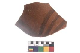 | Description / विवरण | Specimen of potsherd with black decorative geometric painting . |