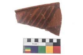 | Description / विवरण | Specimen of potsherd with black decorative geometric painting . |