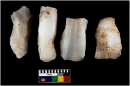 | Description / विवरण | There are n-4 of utilized cores. There are multidirectional irregular dominant scar pattern on both dorsal and ventral face of the cores. |