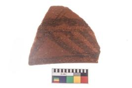 | Description / विवरण | Specimen of potsherd with black decorative geometric painting . |