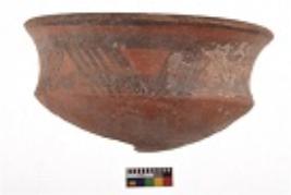 | Description / विवरण | Specimen of black on red ware with decorative geometric Groups of oblique strokes set in horizontal bands on the exterior painting. |