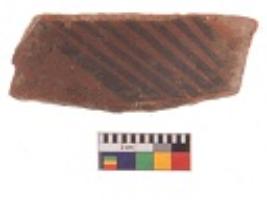 | Description / विवरण | Specimen of potsherd with black decorative geometric Linear painting, Type Black on Red Ware . |