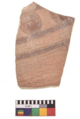 | Description / विवरण | A specimen of a potsherd. It is reddish in colour with black decorative geometric painting on it. |