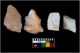 | Description / विवरण | There are n-4 of utilized cores. Out of them 1 is made up of Chalcedony and 3 are made up of Chert. There are multidirectional irregular dominant scar pattern on both dorsal and ventral face of the cores. |