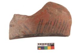 | Description / विवरण | Specimen of potsherd with black decorative geometric painting. |
