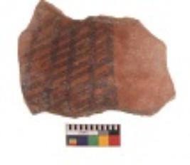 | Description / विवरण | Specimen of potsherd with black decorative geometric Net Pattern painting, Type Black on Red Ware . |