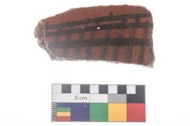 | Description / विवरण | Specimen of potsherd with black decorative geometric Net Pattern painting. |