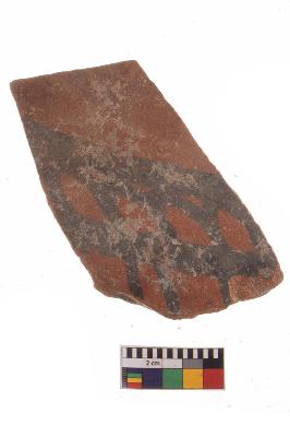 | Description / विवरण | Specimen of potsherd with black decorative geometric Linear painting, Type Black on Red Ware . |