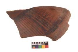 | Description / विवरण | Specimen of potsherd with black decorative geometric painting. |