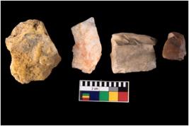 | Description / विवरण | Specimen of fluted cores showing impressions of blades removed from almost all the sides. |