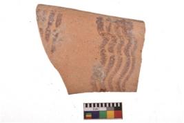 | Description / विवरण | Specimen of potsherd with decorative geometric painting. Type Black on Red Ware . |
