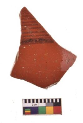| Description / विवरण | Specimen of potsherd with decorative geometric painting. Type Black on Red Ware . |
