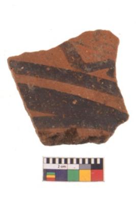 | Description / विवरण | Specimen of potsherd with black decorative geometric painting. |