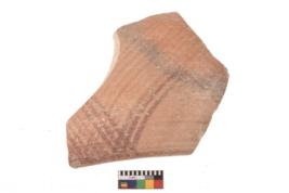 | Description / विवरण | A specimen of a potsherd. It is reddish in colour with black decorative geometric painting on it. |
