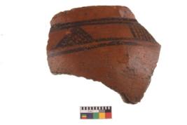 | Description / विवरण | Specimen of potsherd with black decorative geometric painting. |